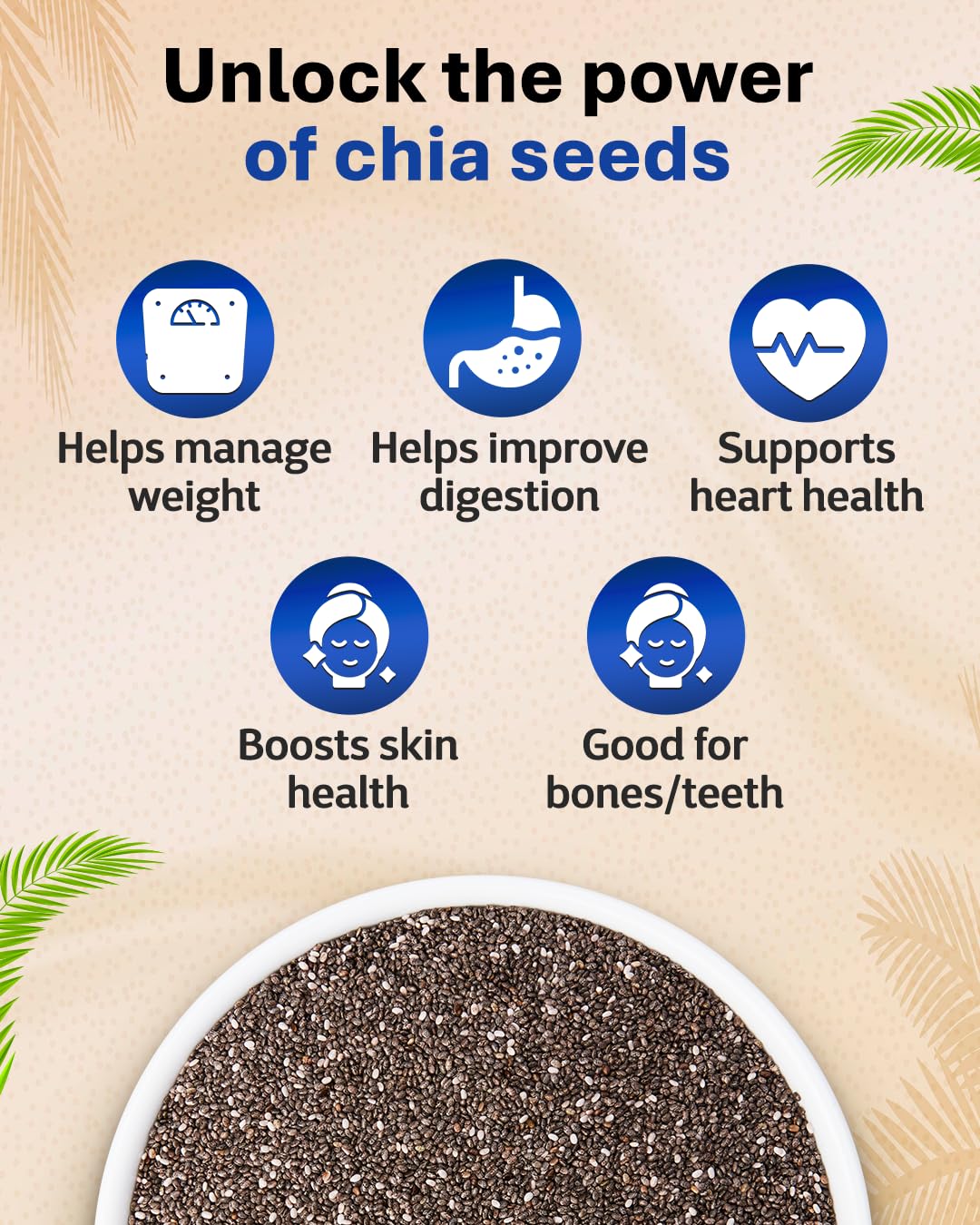 Chia seeds are packed with important nutrients such as calcium, magnesium, phosphorus, and manganese, which contribute to bone health and metabolic support. Regular consumption may help lower blood pressure, regulate blood sugar, and decrease inflammation due to the high content of omega-3 fatty acids and fiber. The antioxidants present in chia seeds help protect cells from oxidative stress and may lower the risk of chronic diseases.