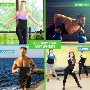 Skipping Rope Sweat belts are most effective when combined with a balanced diet and regular exercise Overheating and dehydration are possible if not used properly or for extended periods.The slimming effect is primarily due to water loss and is not a substitute for long-term weight management.Should be worn according to instructions, not for extended periods, and not while sleeping.Temporary Slimming Effects: Can provide a temporary slimming appearance while worn.The skipping rope for men is design with 2.8 meter long of the rope, it can be adjusted quickly according to your height, suitable for men women and kids. 2 handles are light and grip shaped on the surface and feel exceptionally comfortable. Do skipping rope together with your family and enjoy a happy exercise time Waist trainer Belt for Men and Women promotes workout by producing healthy sweat. This Fat Loss Belt can be worn for 2-3 hours daily while doing any form of physical activity like Yoga, running,gym.Tailored as a belly belt for women after delivery, it helps tighten the abdomen and support recovery while doubling as a stomach belt for women for effective tummy shaping.